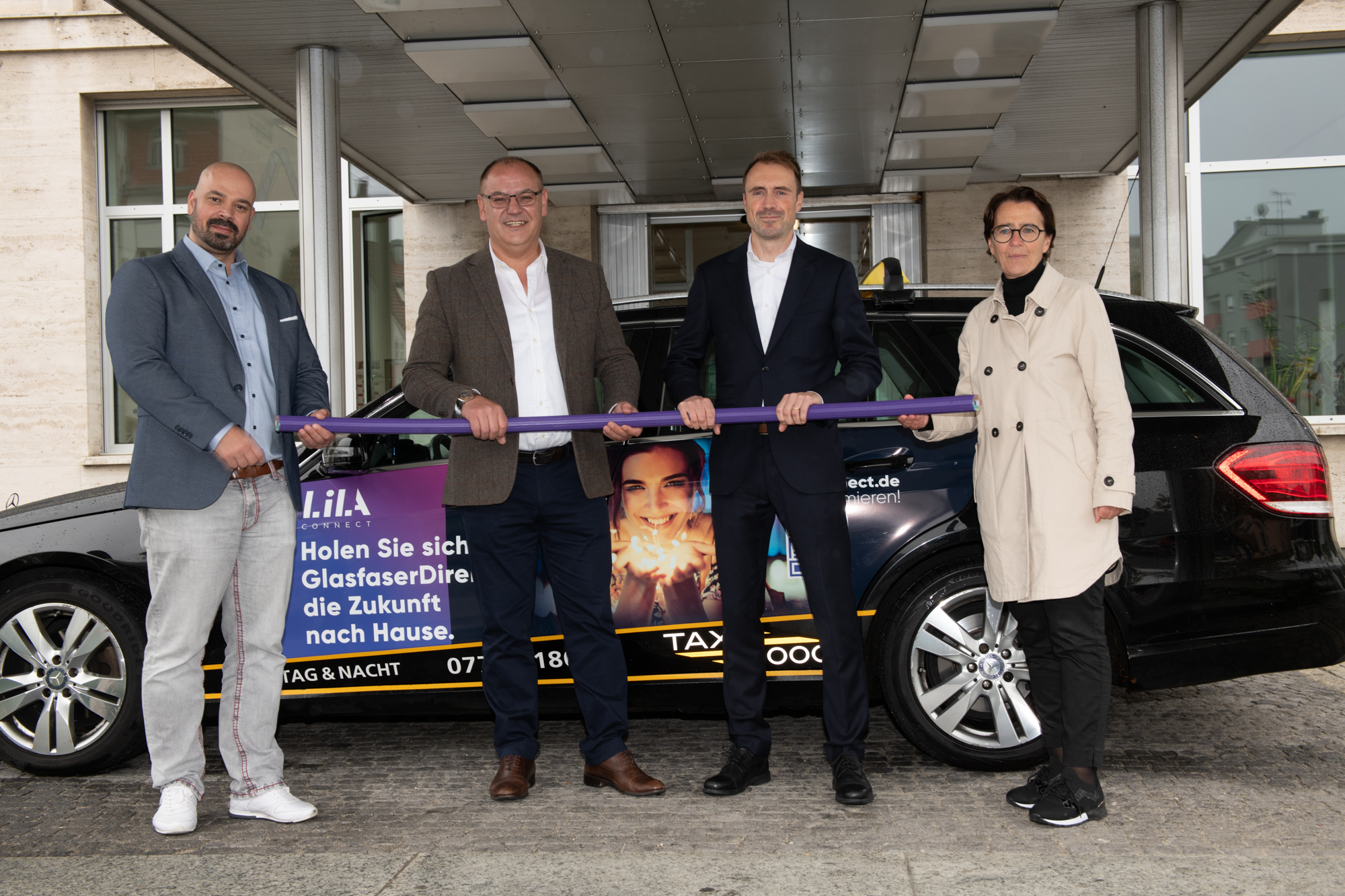 Von Links: Maik Zappe, Projektleiter MSF, Cengiz Temur, COO LilaConnect, Jan Backman, Country Manager VX Fiber, Claudia Kessler-Frantzen, Wirtschaftsförderung Stadt Singen